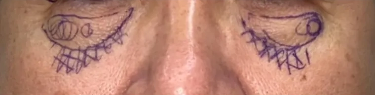 手術前,標記眼袋脂肪範圍與淚溝補脂肪的區域。
